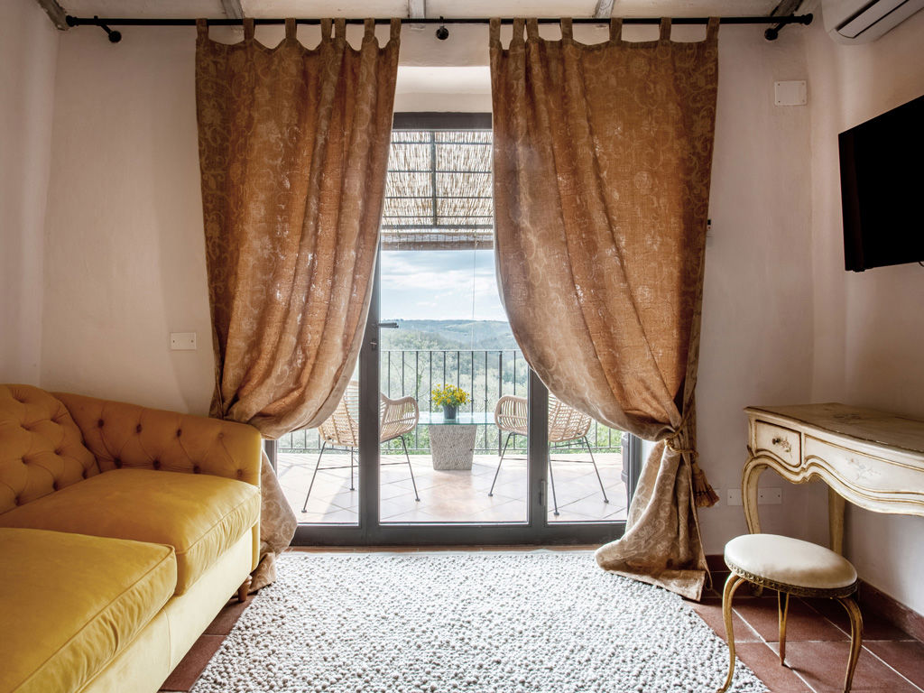 Nel Borgo, accanto al Castello, si trovano tre eleganti junior suite, ognuna dotata di terrazza panoramica per momenti di totale relax. Arredate con un raffinato stile toscano contemporaneo, le junior suite dispongono di una spaziosa camera matrimoniale, un accogliente angolo salotto con vasca a vista e bagni in travertino.