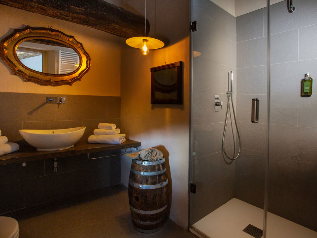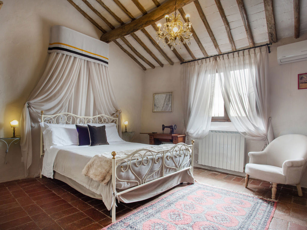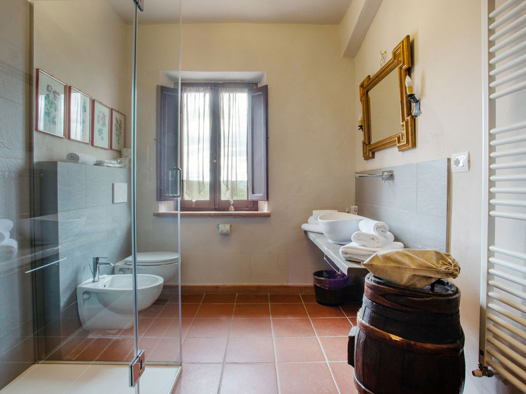 Ogni stanza è arredata con eleganza in stile toscano, con travi a vista e pavimenti in cotto che ne esaltano il carattere. I bagni, spaziosi e moderni, sono dotati di arredi raffinati, con docce a pioggia o vasca. Il design lineare e sobrio offre un'esperienza di comfort assoluto.