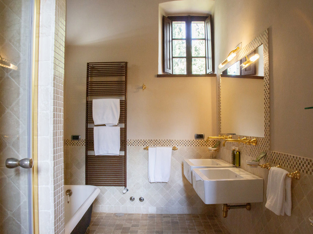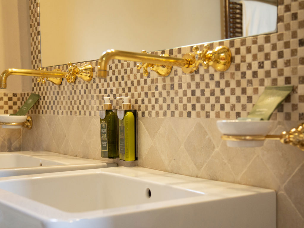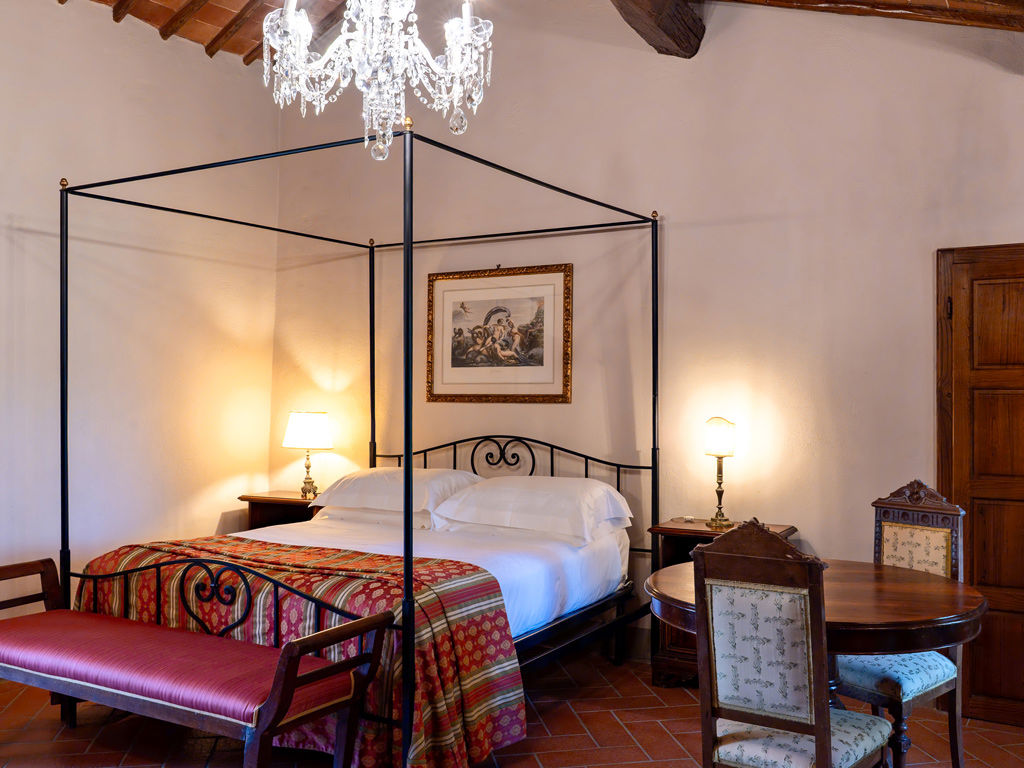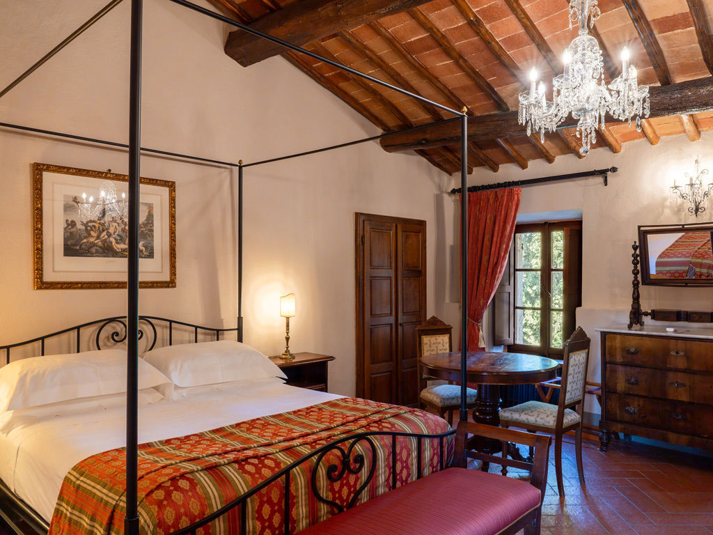 Situata al primo piano del Castello è accessibile tramite una scalinata in legno. La spaziosa camera matrimoniale, con letto a baldacchino e raffinati mobili d'epoca, è completata da un salotto separato. L’ampio bagno, che collega le due stanze, è dotato di doppi lavandini, vasca in stile "Devon & Devon" e una grande doccia in travertino, arricchita da eleganti rubinetti dorati.