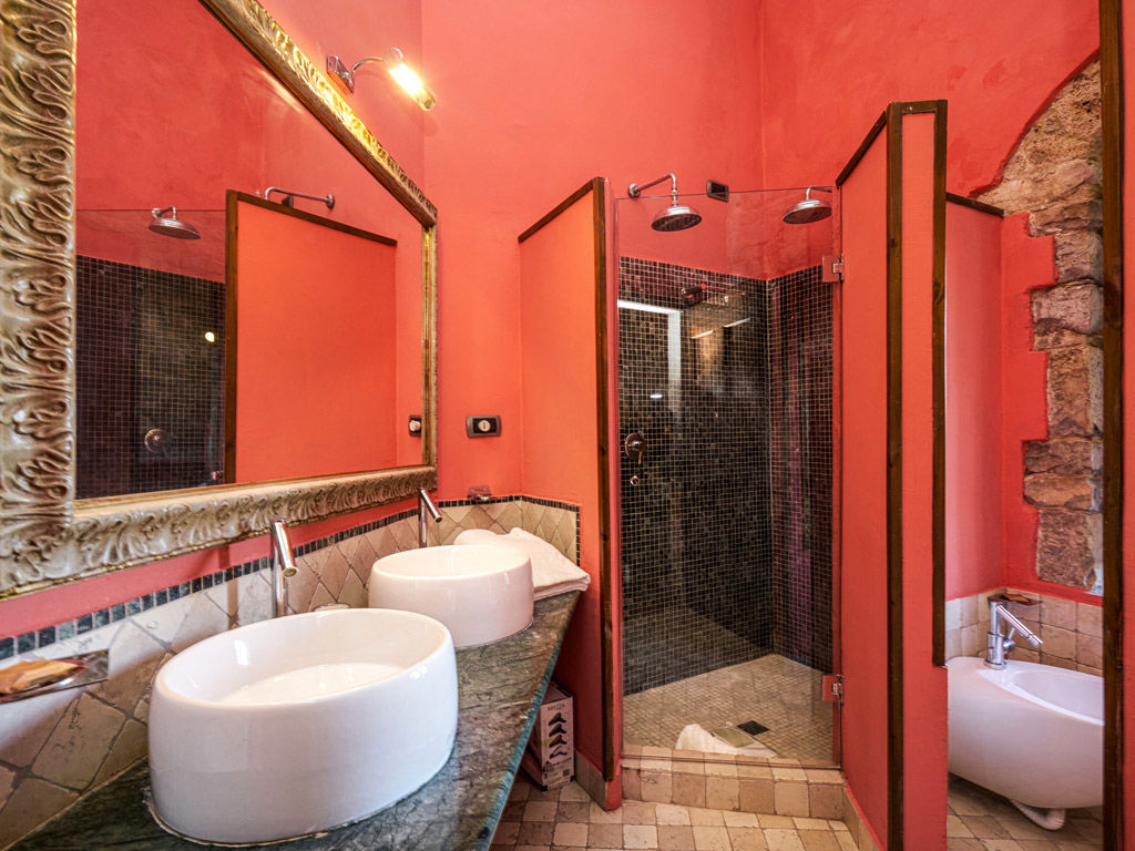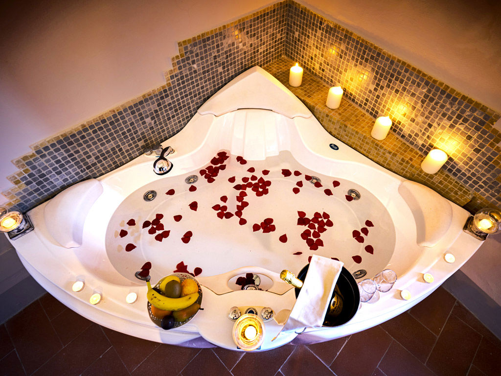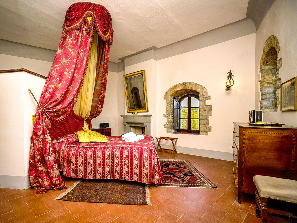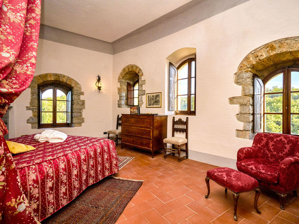 Situata all’ultimo piano della Torre, la Tower Suite, grazie alle sue 8 finestre, vanta una vista panoramica a 360° sulla campagna toscana. Elegante e raffinata, la suite è composta da una spaziosa camera con un letto king-size a baldacchino e vasca idromassaggio. L’ampio soggiorno è arredato con mobili d'epoca in legno massello. Il bagno è rivestito in travertino, completo di doccia. Unica nel suo genere, la suite è accessibile tramite 61 scalini in pietra e legno.